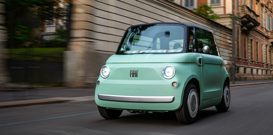FIAT setzt seine Mission fort, nachhaltige Mobilität für Städte zu entwickeln, um das elektrische Fahren einfach und für alle zugänglich zu machen. Der neue Fiat Topolino ist fröhlich, wird reinelektrisch angetrieben und ist mit einer Länge von nur 2,53 Metern wendiger als ein herkömmlicher Pkw. Diese geringen Abmessungen sind außerdem ein großer Vorteil bei der Parkplatzsuche. Die 5,4-kWh-Batterie ermöglicht eine Reichweite von bis zu 75 Kilometern*. Zum Aufladen genügt eine haushaltsübliche 220-Volt-Steckdose. Das 45 km/h erreichende Gefährt kann sogar von jugendlichen Fahranfängern im Alter ab 15 Jahren genutzt werden. Die limitierte Geschwindigkeit passt darüber hinaus zum aktuellen Trend in vielen Städten, ein Tempolimit von 30 km/h einzuführen.